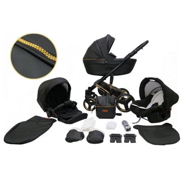 Πολυκαρότσι 3σε1 με ξεχωριστό Πορτ μπεμπέ και Car Seat 0-13kg Comodo Mikrus Gold Black 28 Eco Leather 603063500006