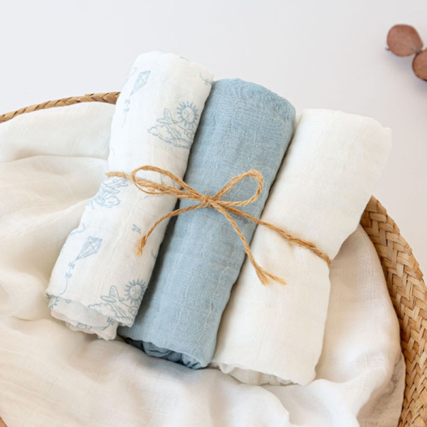 Kiokids: Μουσελίνα Bamboo Sky Planes Σιέλ 70×70εκ.Σετ 3τμχ.
