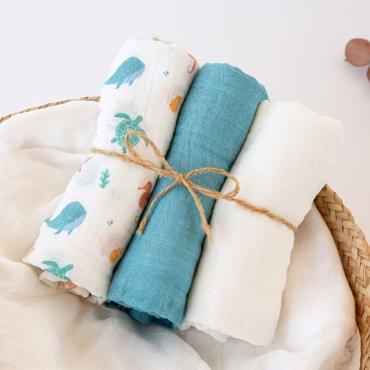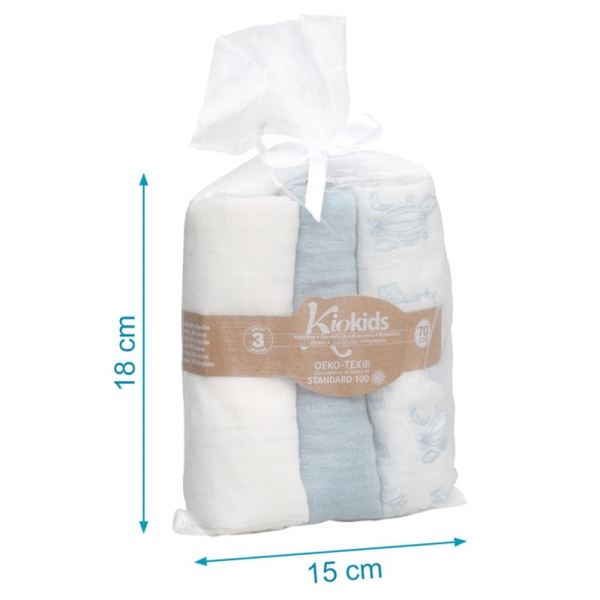 Kiokids: Μουσελίνα Bamboo Ocean Μπλε 70×70εκ. Σετ3τμχ.