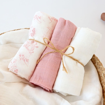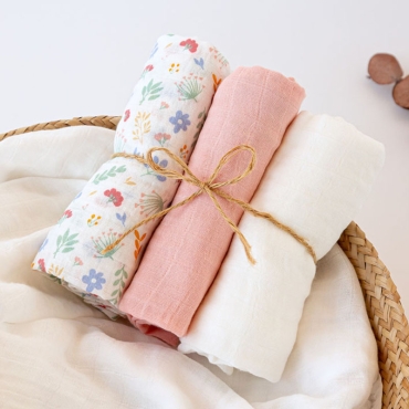 Kiokids: Μουσελίνα Bamboo Spring Ροζ 70×70εκ. Σετ3τμχ