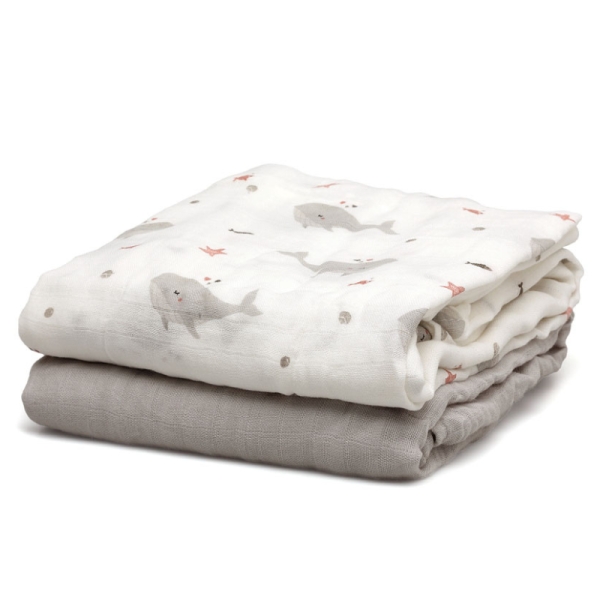 Kiokids Σετ Μουσελίνα Bamboo 120x120cm Whales (2 τμχ)