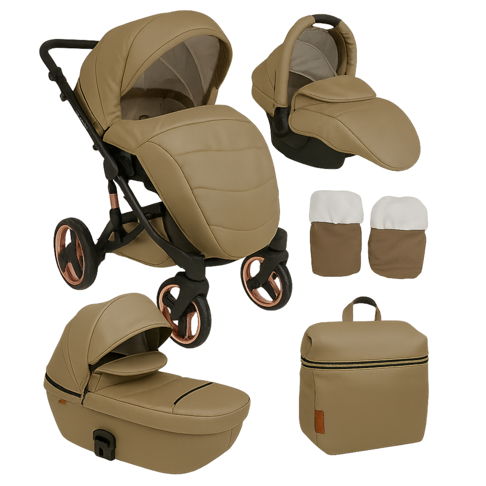 Πολυκαρότσι 3σε1 με ξεχωριστό Πορτ μπεμπέ και Car Seat 0-13kg Comodo Mikrus Gold Mocca 16 Eco Leather 60306350707