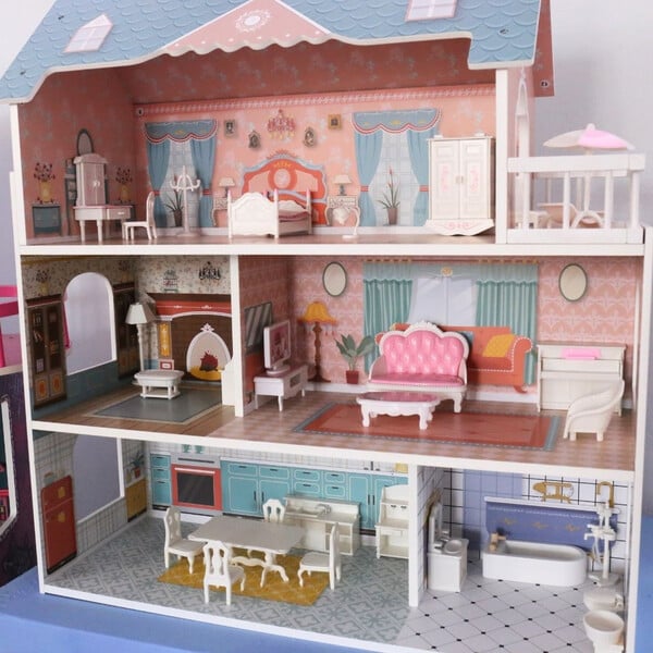 Κατασκευασμένο και διακοσμημένο με περίτεχνες λεπτομέρειες, αυτό το κουκλόσπιτο αποτελεί ένα μαγευτικό καταφύγιο για δημιουργικό παιχνίδι.