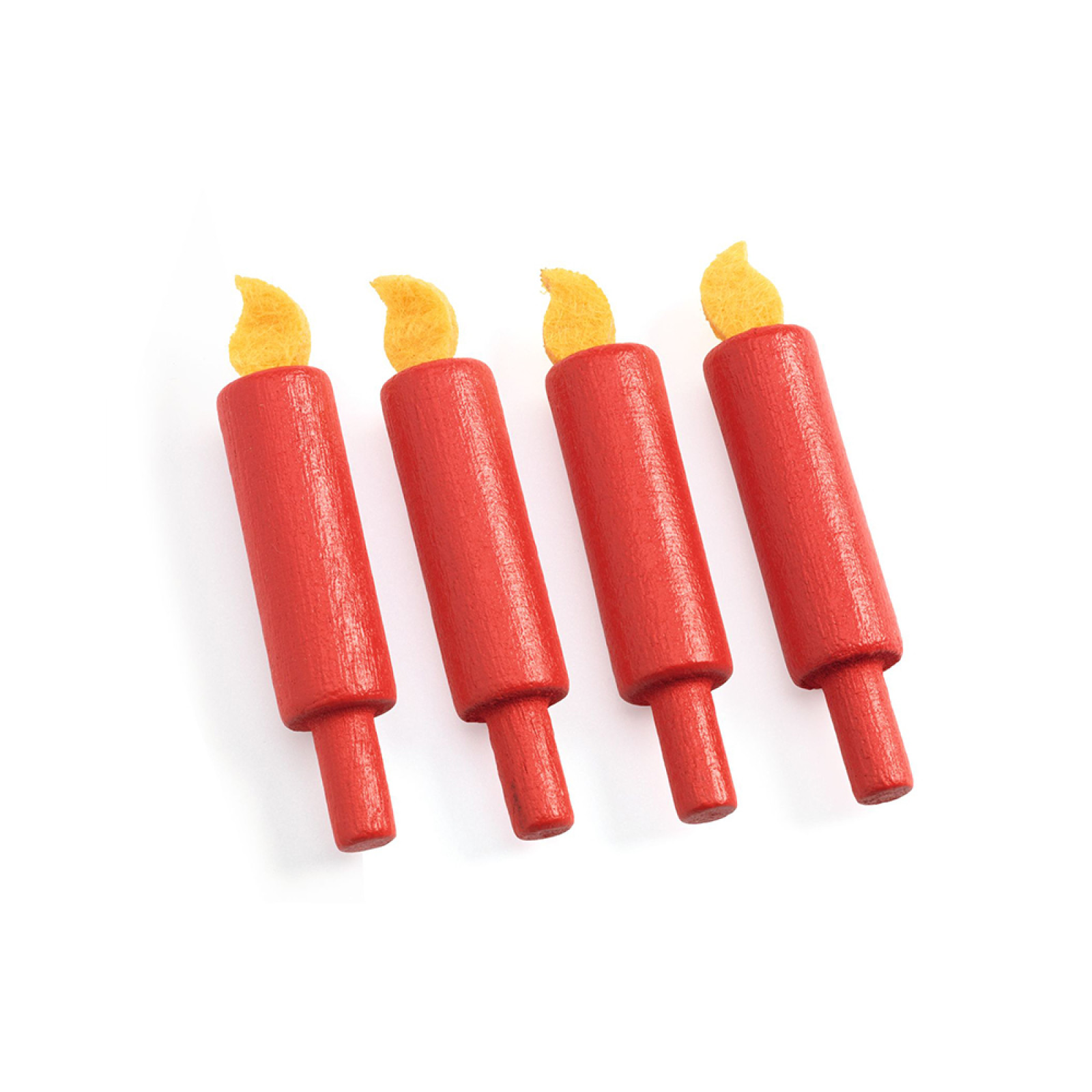 Κατασκευασμένο από μασίφ ξύλο καουτσουκόδεντρου με οικολογικά χρώματα και λούστρα που έχουν ως βάση το νερό, αυτό το ολοκληρωμένο σετ περιλαμβάνει 4 κομμάτια τούρτας, 4 κεράκια, 8 διακοσμητικά στοιχεία και 1 ξύλινο κουτί αποθήκευσης που μπορεί να χρησιμοποιηθεί και ως δίσκος σερβιρίσματος ή φόντο παιχνιδιού.