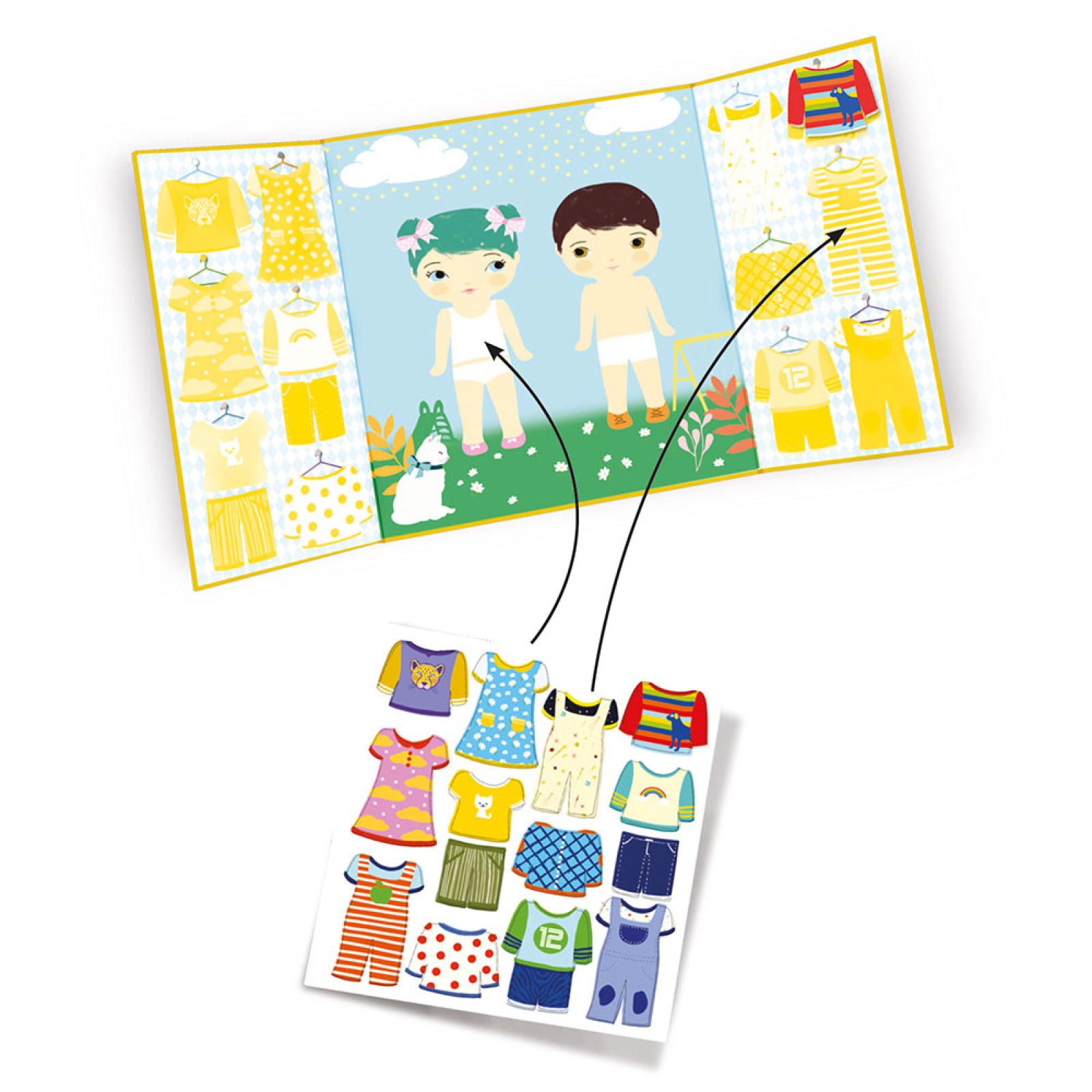 Djeco τρίπτυχο με αυτοκόλλητα επανατοποθετούμενα “Ντύνω παιδάκια“