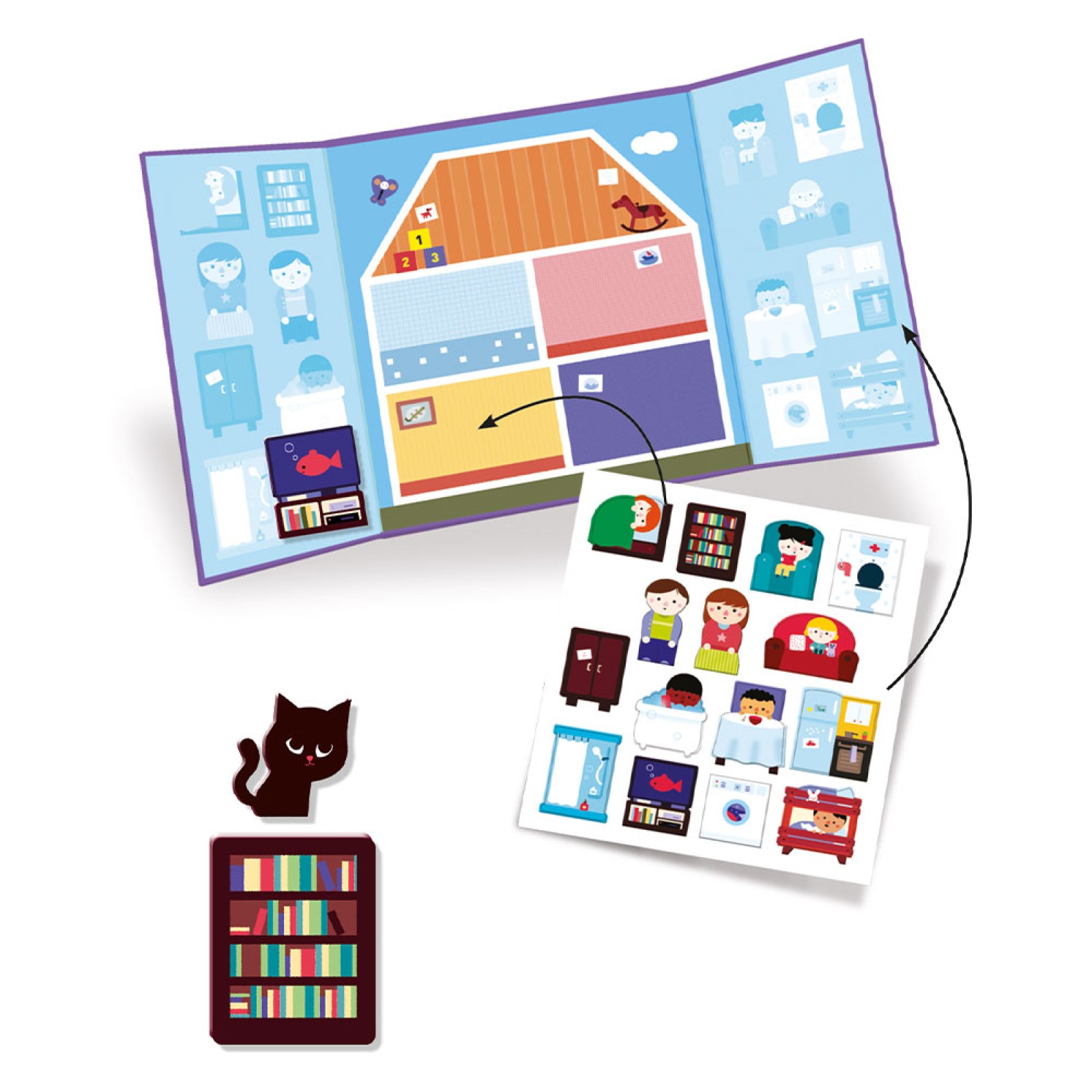 Djeco τρίπτυχο με αυτοκόλλητα επανατοποθετούμενα Χώροι Σπιτιού