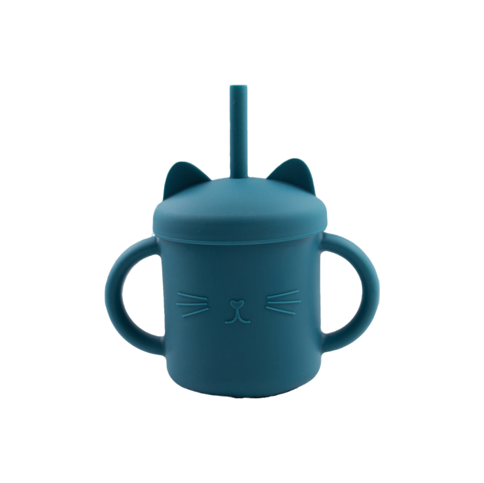 Dodo’sLand: Chester The Cat II- Εκπαιδευτικό ποτηράκι σιλικόνης με στεγανό καπάκι & καλαμάκι Blue Grey