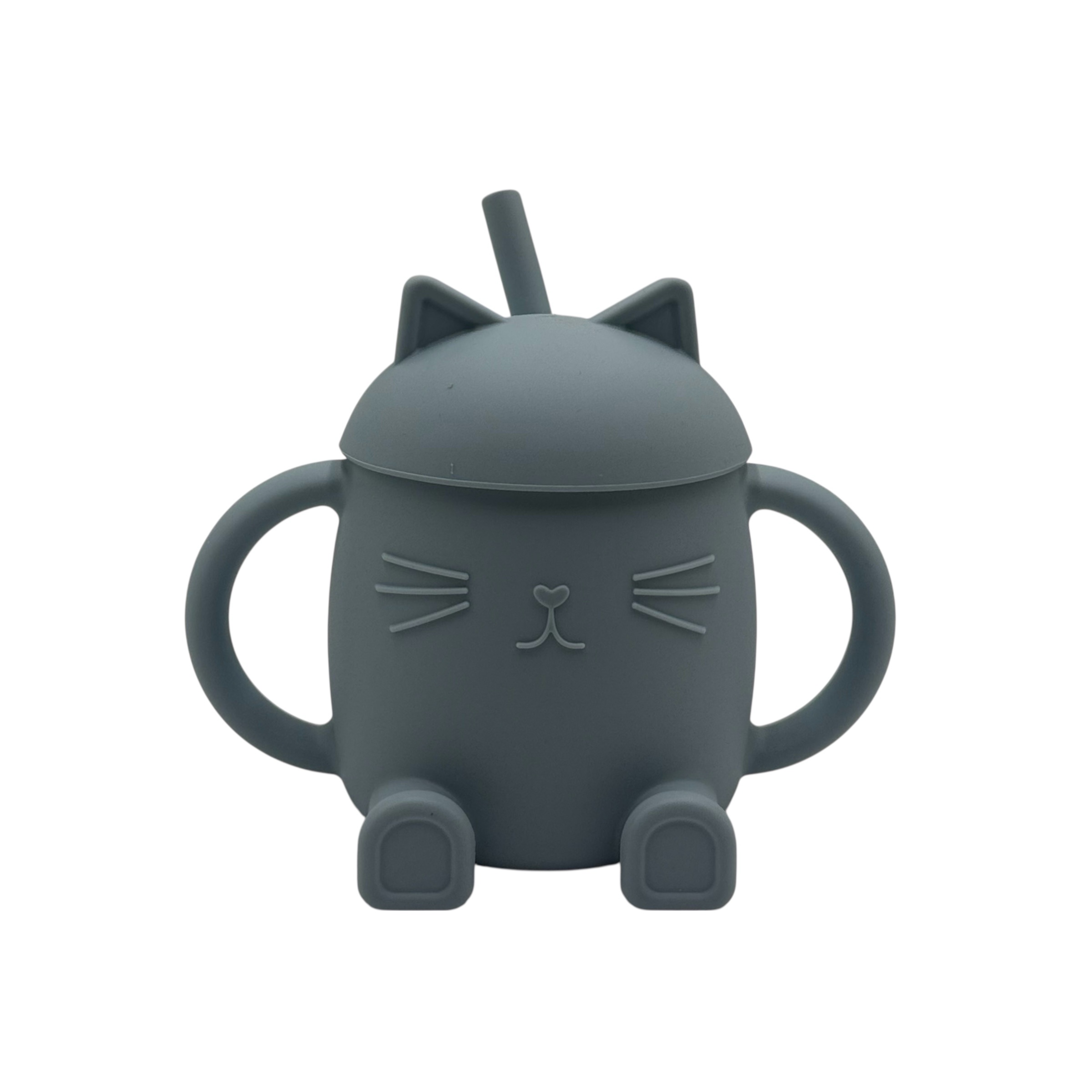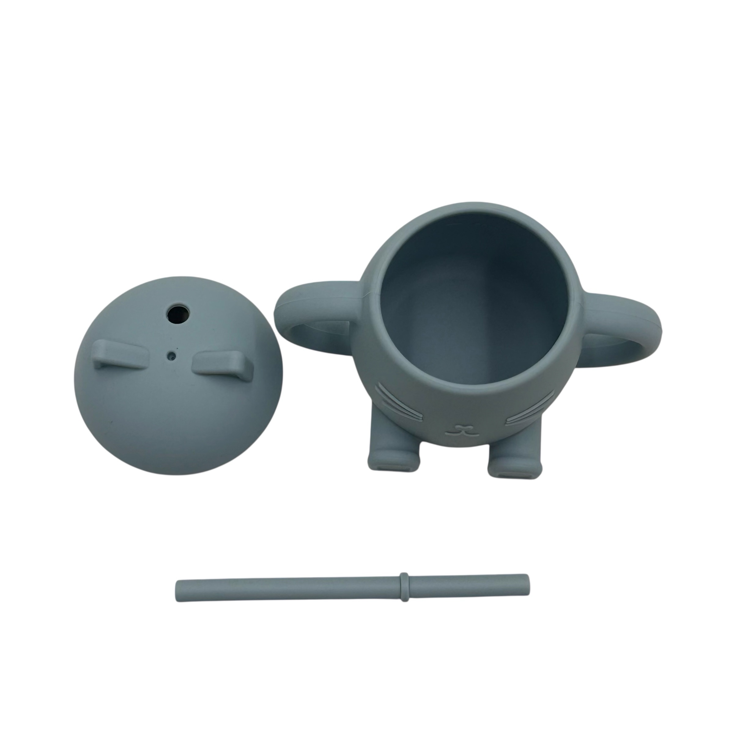 Dodo’sLand: Chester The Cat II- Εκπαιδευτικό ποτηράκι σιλικόνης με στεγανό καπάκι & καλαμάκι Dusty Blue