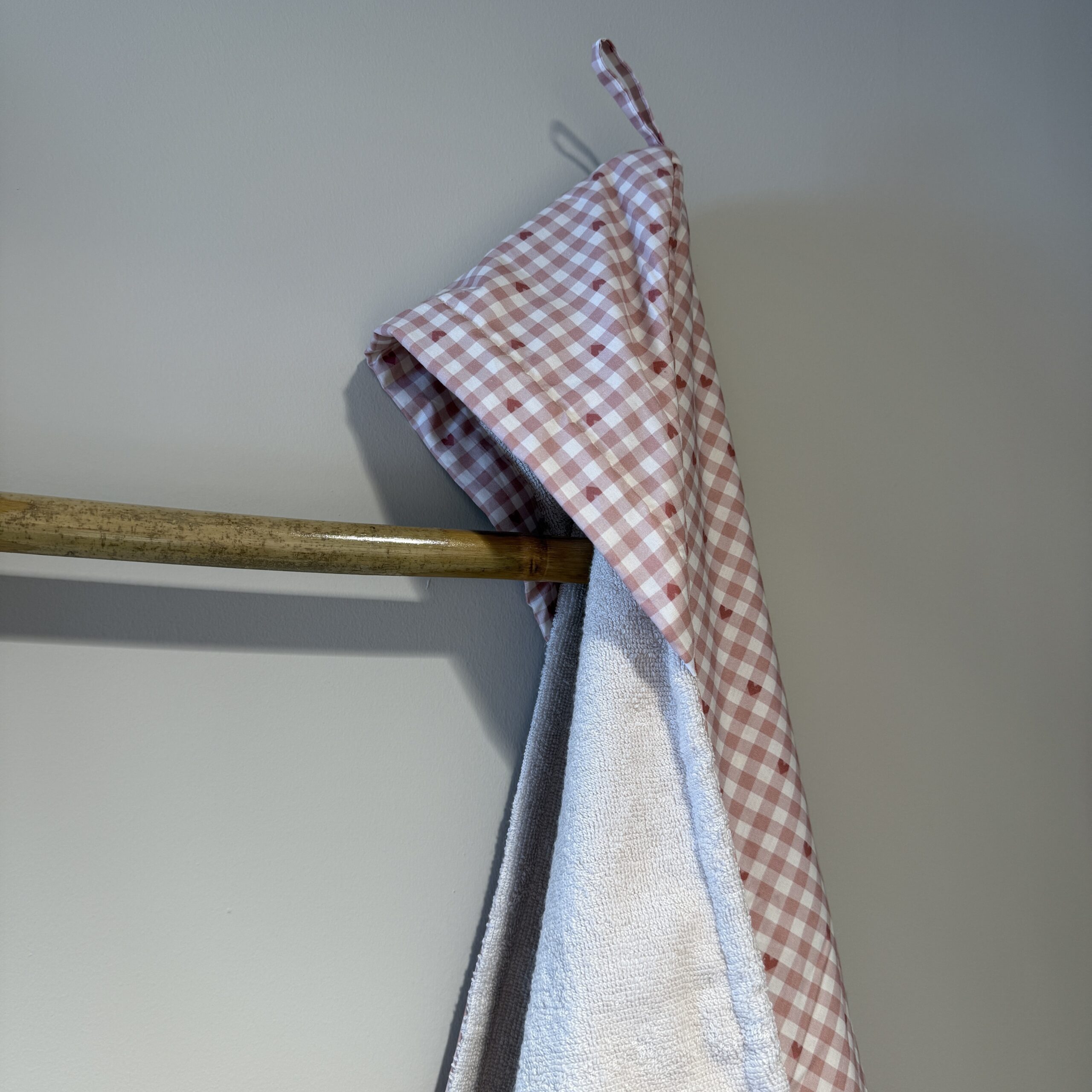 Ανακαλύψτε το βαμβακερό μπουρνούζι κάπα σε σχέδιο Καρό Καρδιές από πετσέτα bamboo, την απόλυτη επιλογή για τις μανούλες που αναζητούν ποιότητα και άνεση. Συνδυάζει την απαλότητα του βαμβακιού με τις φυσικές ιδιότητες του bamboo, προσφέροντας μοναδική αίσθηση πολυτέλειας. Το εξαιρετικά απορροφητικό υλικό κρατάει το σώμα σας ζεστό και άνετο μετά το μπάνιο, ιδανικό για ευαίσθητες επιδερμίδες. Με κλασικό σχεδιασμό που επιτρέπει ελευθερία κινήσεων, το μπουρνούζι στεγνώνει γρήγορα, καθιστώντας το τέλειο για καθημερινή χρήση στο σπίτι ή στην παραλία.