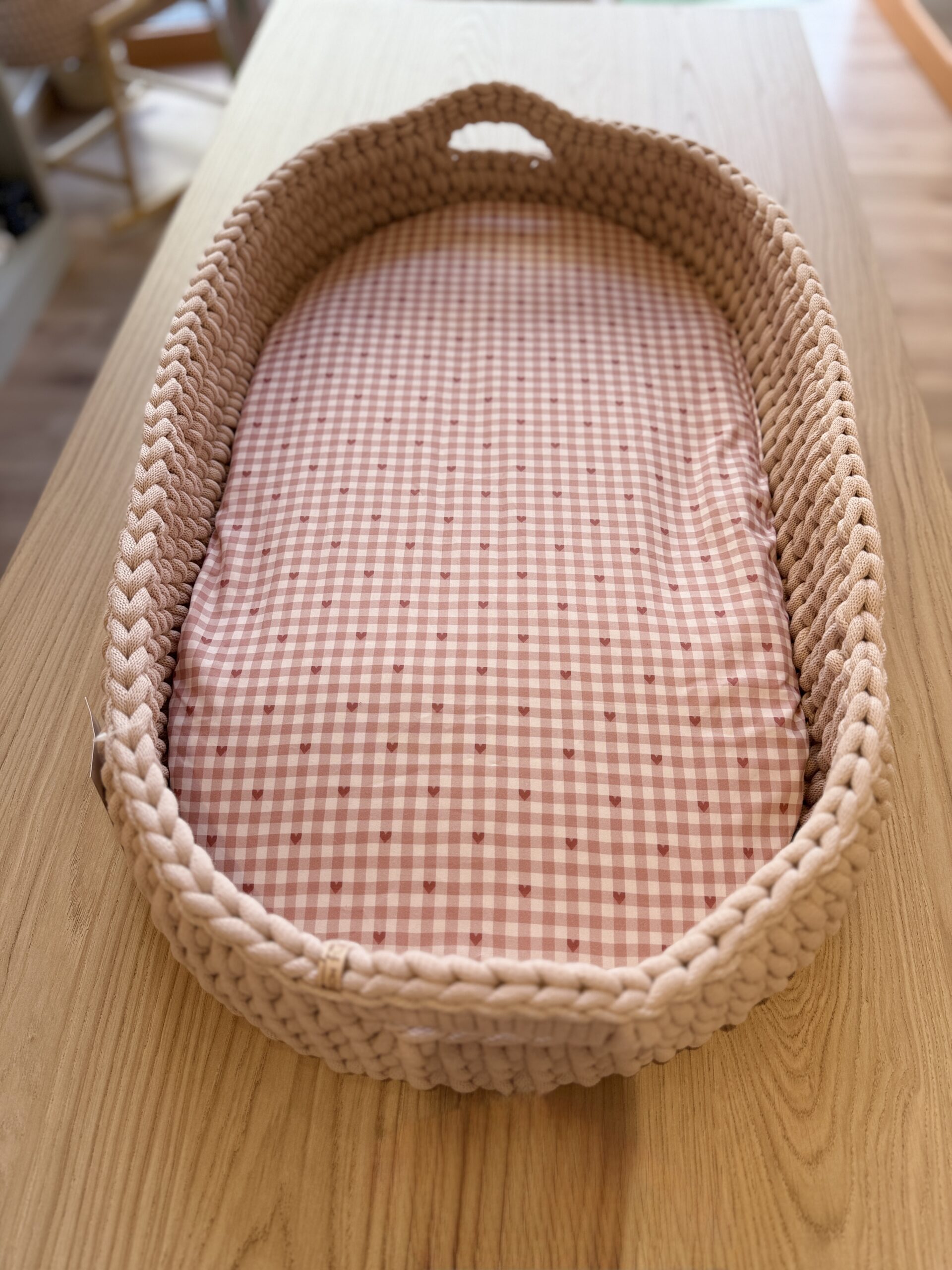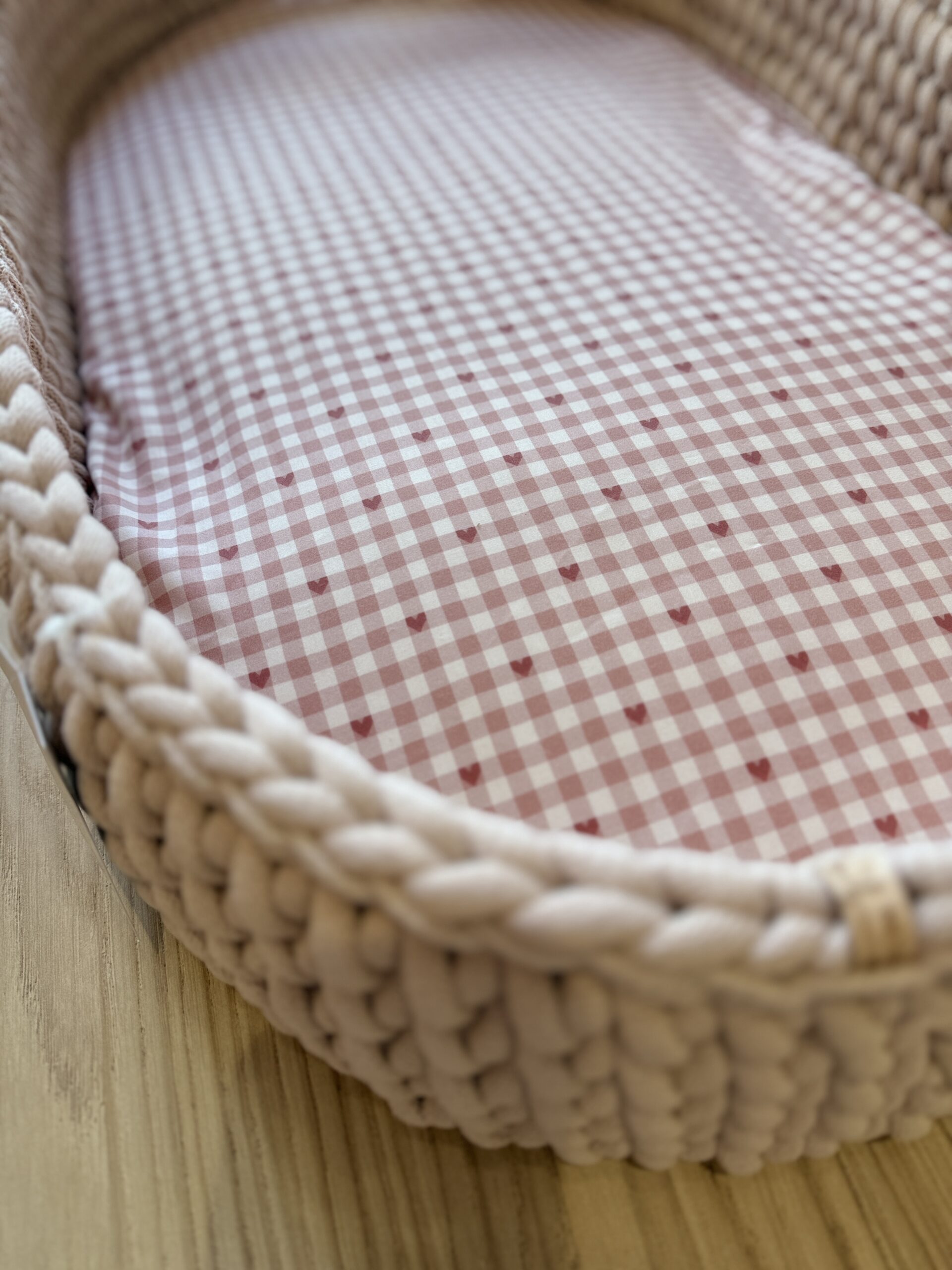 Grandes Suenos σεντόνι λίκνου Καρό Καρδιές 50x90cm