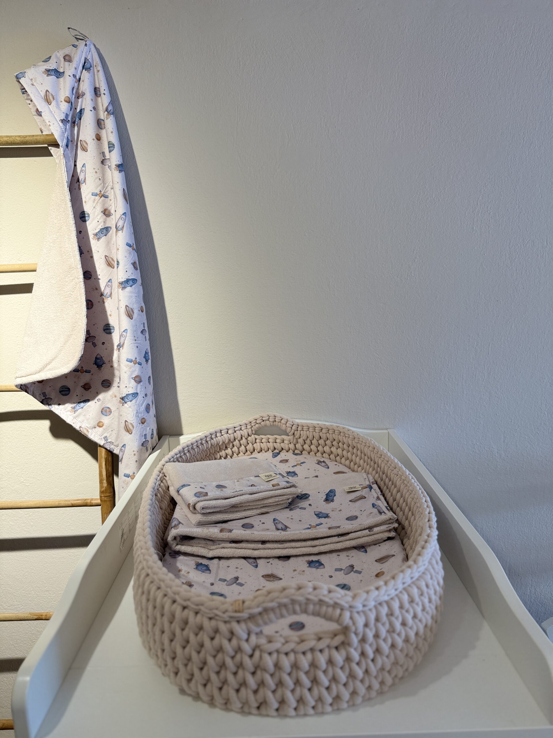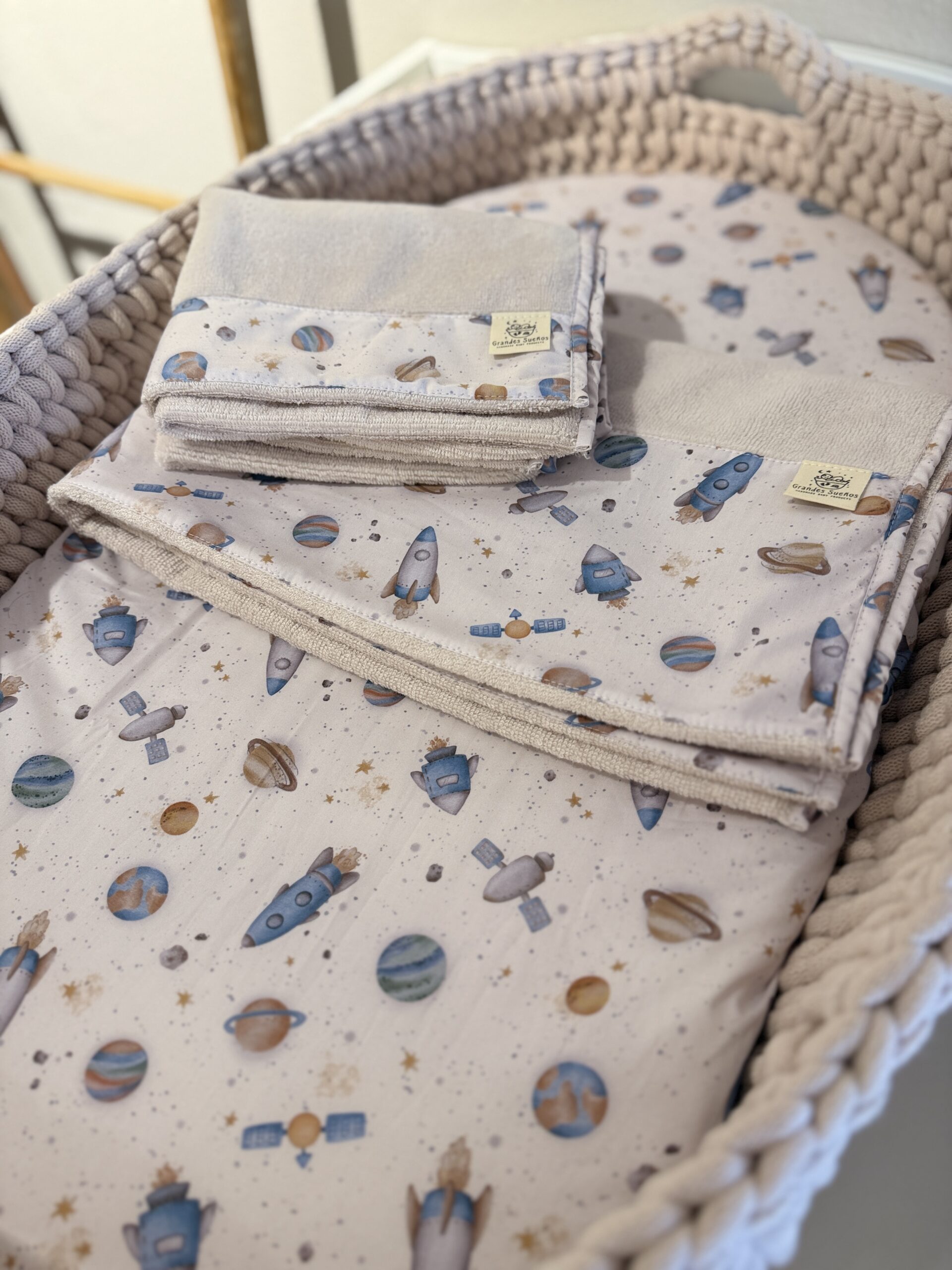 Πλένετε τις πετσέτες στους 40 βαθμούς στο πλυντήριο ρούχων χρησιμοποιώντας ένα απορρυπαντικό κατάλληλο για βρέφη και μωρά. Μπορείτε να τις στεγνώσετε στο στεγνωτήριο ή στο φυσικό περιβάλλον.