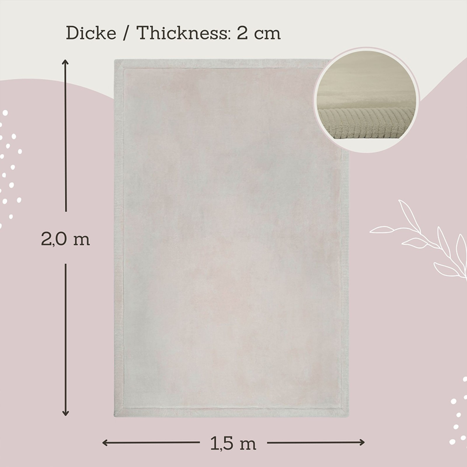 Το μέγεθος του (200x150x2.5εκ.) καθιστά το χαλί ιδανικό για προστασία από το κρύο πάτωμα, μπουσούλημα, παιχνίδι, ακόμα και γιόγκα ή γυμναστική στο σπίτι.