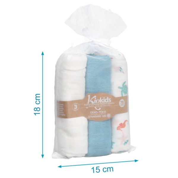 Kiokids: Μουσελίνα Bamboo Ocean Μπλε 70×70εκ. Σετ3τμχ.