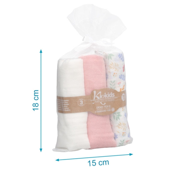 Kiokids: Μουσελίνα Bamboo Spring Ροζ 70×70εκ. Σετ3τμχ