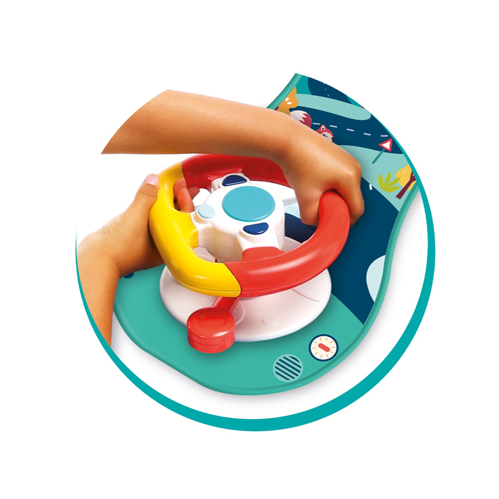 Διαδραστικό παιχνίδι δραστηριοτήτων της εταιρείας Ludi με ήχο, καθρέφτη και ρυθμιζόμενο τιμόνι.