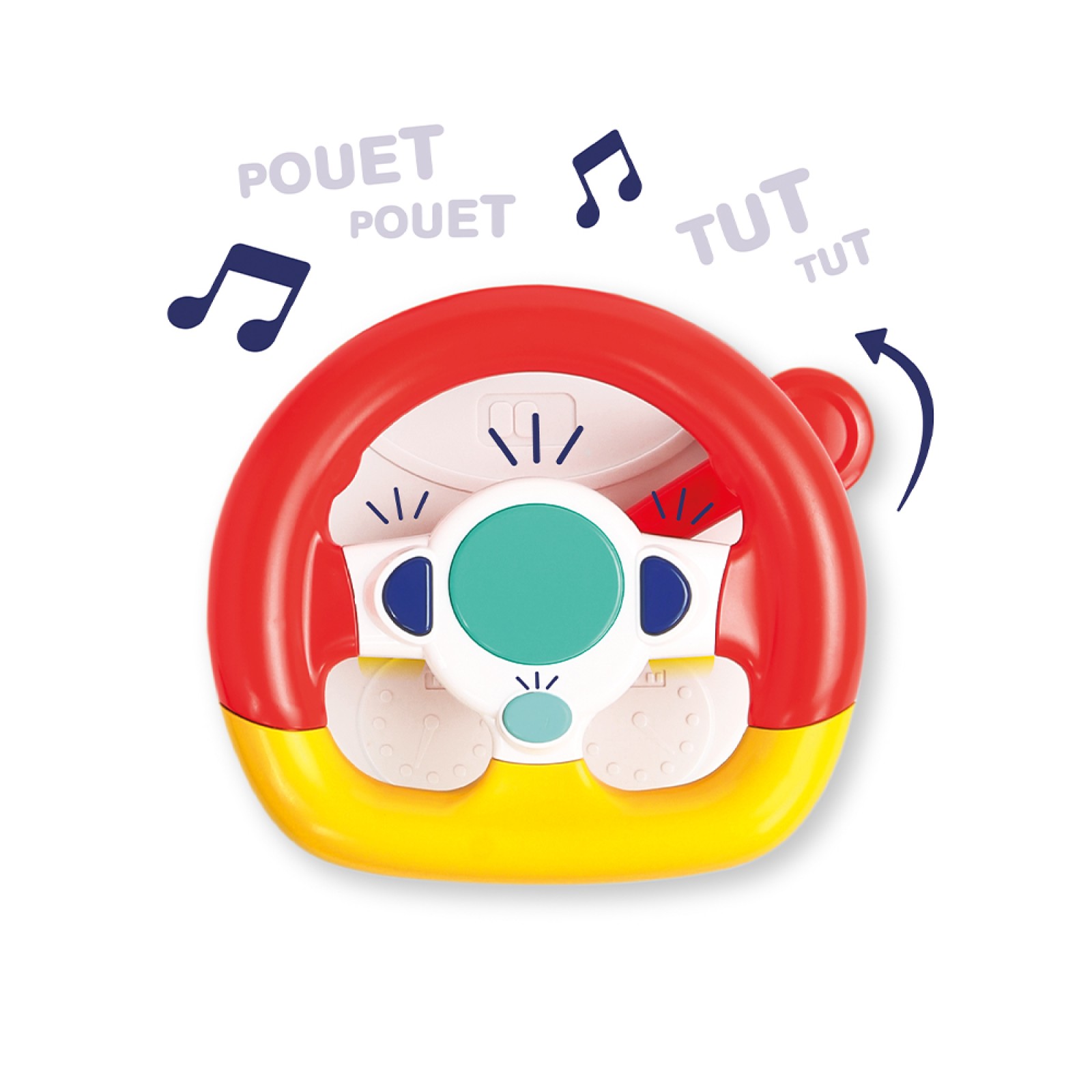 Διαθέτει διαδραστικό τιμόνι με εκκίνηση, κόρνα, δείκτες και έναν καθρέφτη για να παρατηρεί τη φιγούρα και τις γκριμάτσες του.