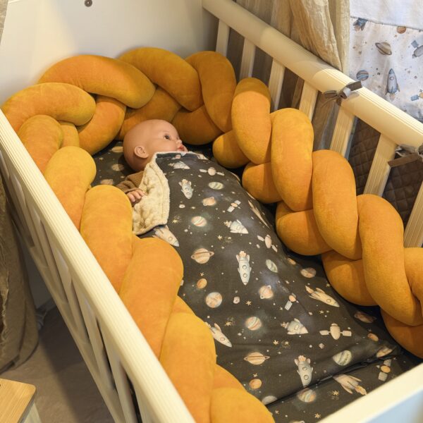 Μπορείτε να τη στερεώσετε εύκολα σε ράβδους κούνιας, κάγκελα ή ράφια με τα 3 σετ κορδέλες που είναι ραμμένες πάνω της.