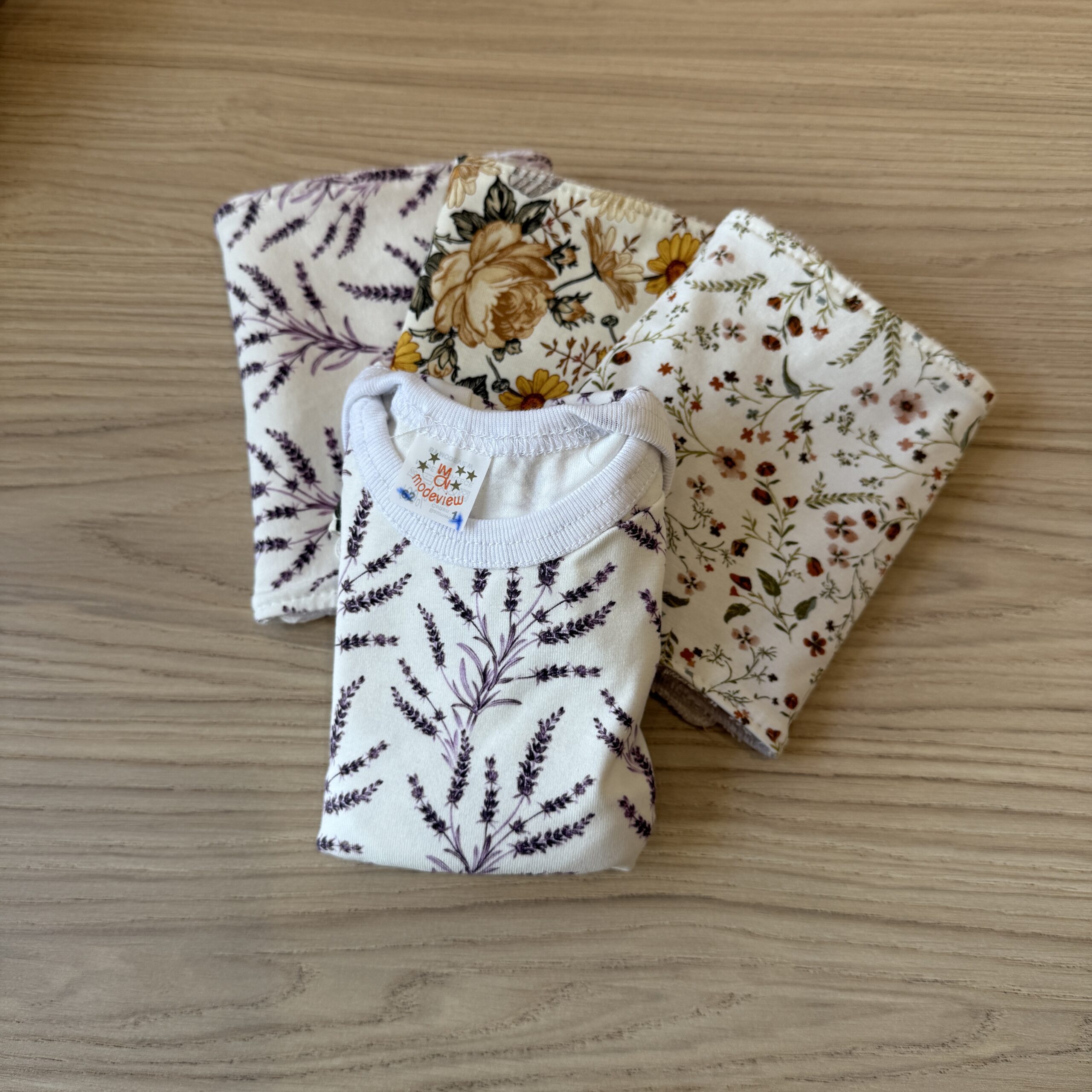 Υπέροχο και χρηστικό δώρο για ένα νέο μωράκι. Φανελάκι ολόσωμο Νο 4 και τρία πανάκια φροντίδας σε μοναδικό σχέδια!