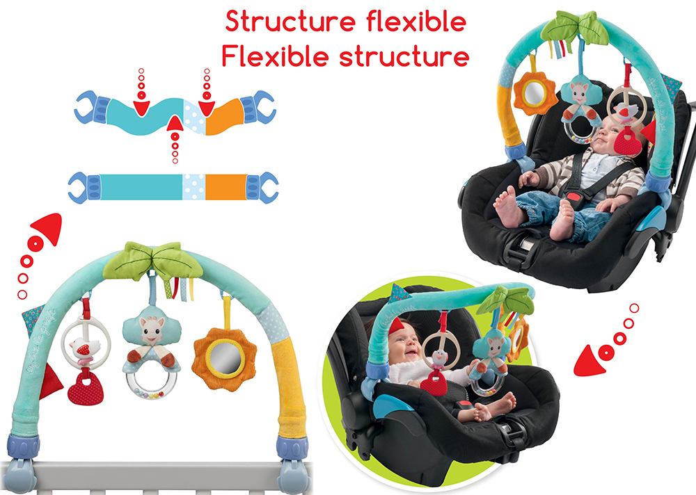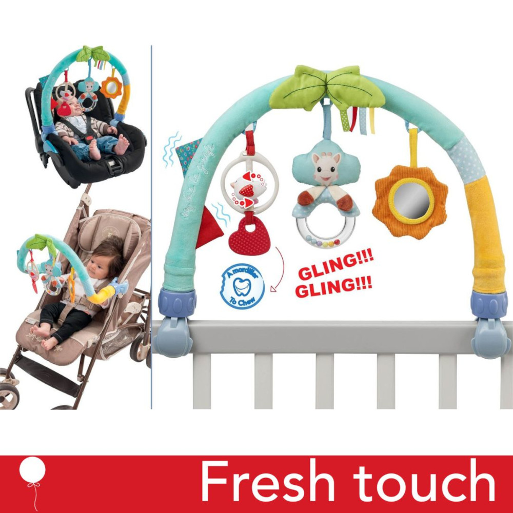 Η μπάρα πολλαπλών δραστηριοτήτων της αγαπημένης Σόφι της καμηλοπάρδαλης είναι ιδανική για να διασκεδάζει το μωρό σας και να ξυπνάει τις αισθήσεις του, κάτω από οποιεσδήποτε συνθήκεςΜεταφέρεται παντού και εύκολα και εφαρμόζει σε όλες τις κούνιες, τα ρηλάξ, τα καρότσια ή τα καθισματάκια αυτοκινήτουΕίναι εύκολο στην εγκατάσταση με ρυθμιζόμενη κλίση και στις δυο μεριέςΜπορεί να χρησιμοποιηθεί και σε εσωτερικό αλλά και σε εξωτερικό χώρο. Τόσο βολική!Χαρακτηριστικά:Κουδουνίστρα με την Σόφι και χρωματιστές μπαλίτσεςΜασητικόΤο kiwi το πουλάκι Καθρεφτάκι για να βλέπει τον εαυτό τουΥφασμάτινες ετικέτες που κάνουν θόρυβο στο πιάσιμο
