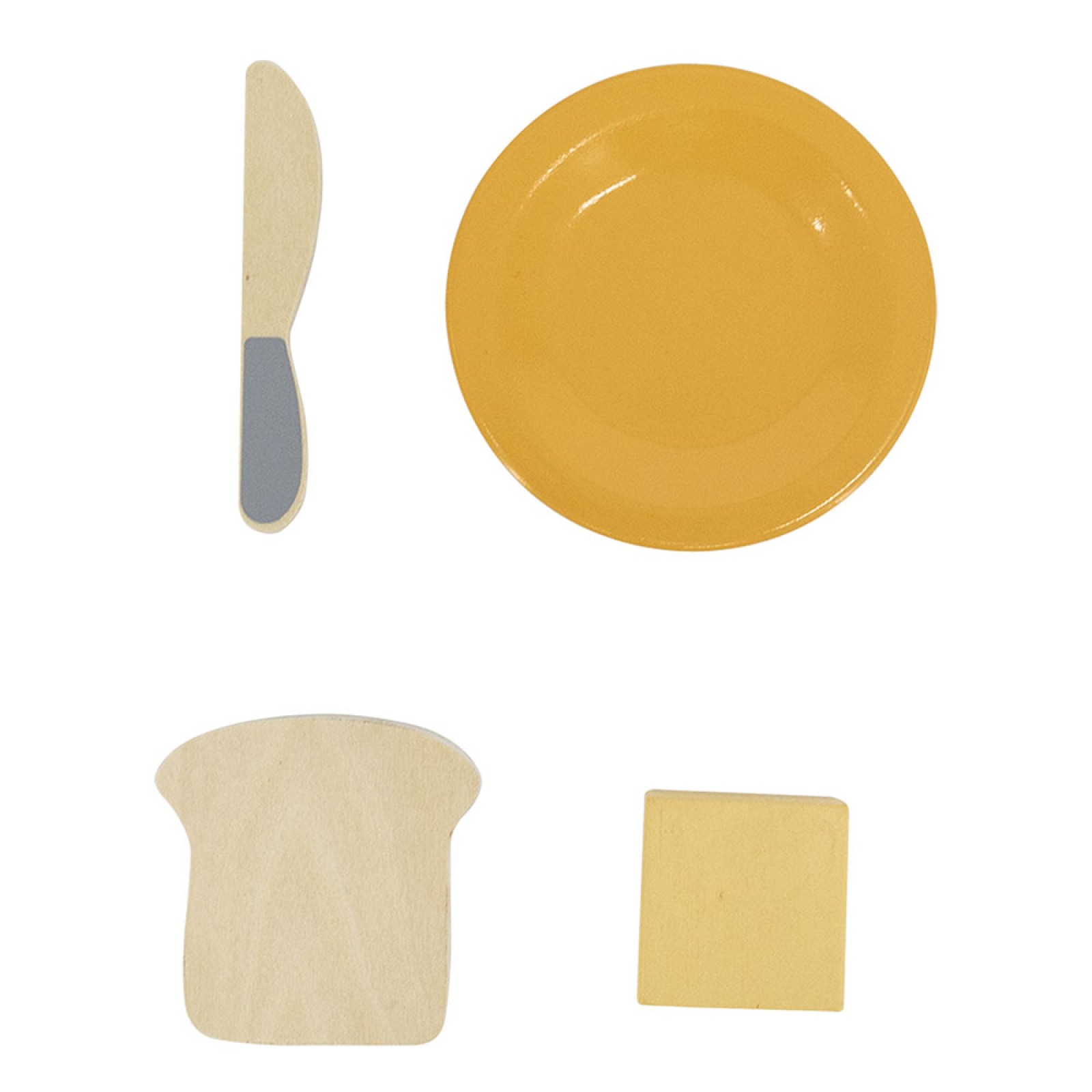 Στη συσκευασία περιλαμβάνονται: 1 τοστιέρα, 2 φέτες ψωμί, ένα πιάτο, ένα μαχαίρι και τρία κομμάτια βουτύρου.