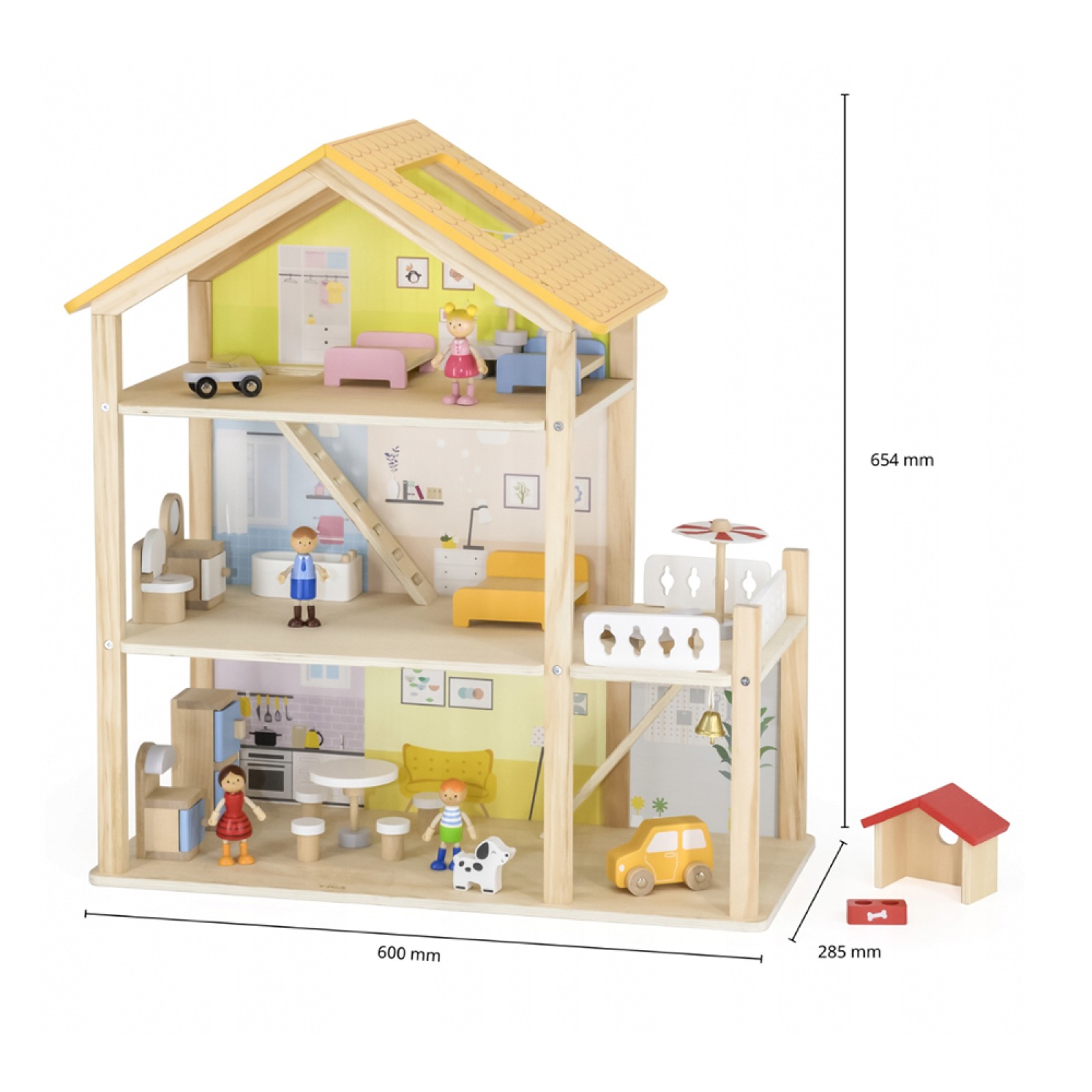 Ανακαλύψτε το ιδανικό σκηνικό για ατελείωτο παιχνίδι ρόλων! Αυτό το τριώροφο, όμορφα επιπλωμένο ξύλινο κουκλόσπιτο της εταιρείας Viga, θα γίνει το αγαπημένο μέρος παιχνιδιού κάθε παιδιού, προσφέροντας αμέτρητες ώρες διασκέδασης και δημιουργικότητας.