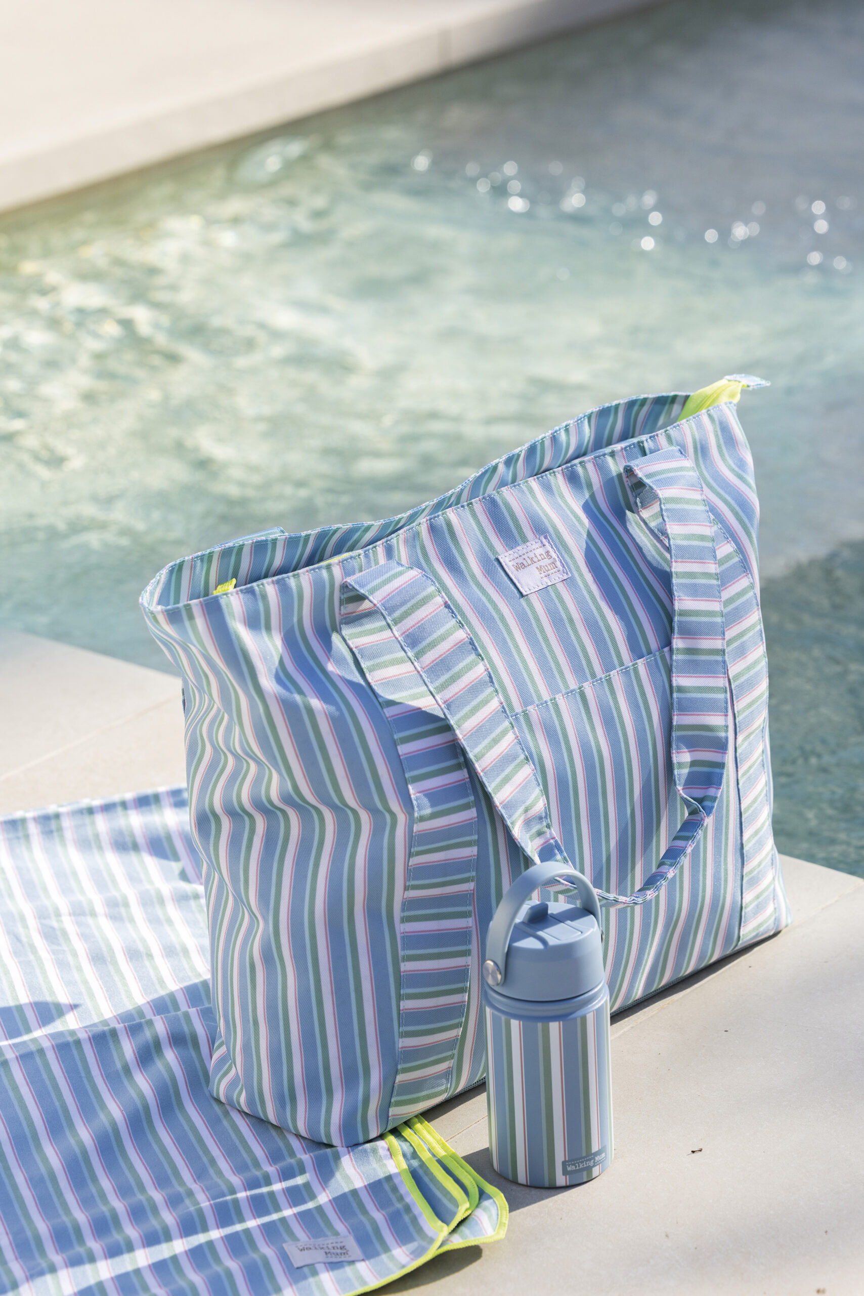 Η τσάντα παραλίας Strips της Walking Mum είναι το απόλυτο καλοκαιρινό αξεσουάρ για τις οικογένειες που αναζητούν στυλ και πρακτικότητα. Με το διαχρονικό σχέδιό της, είναι ιδανική για να μεταφέρετε όλα τα απαραίτητα στην παραλία, την πισίνα ή τις εξορμήσεις σας στη φύση.