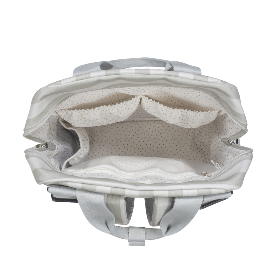 Ελαφρύ και ανθεκτικό με μεγάλη χωρητικότητα για να μεταφέρετε όλα όσα χρειάζεστε εσείς και το μωρό σας. Το σχήμα του προσφέρει πολλές εξωτερικές και εσωτερικές τσέπες για να κρατάτε τα πάντα οργανωμένα και διαθέσιμα. Διαθέτει τσέπες για να αποθηκεύετε μπουκάλια και να τα διατηρείτε ασφαλή. Περιλαμβάνει μία αλλαξιέρα και μια τσέπη για να αποθηκεύετε βρεγμένα ρούχα και να απομονώνετε την υγρασία από το υπόλοιπο σακίδιο. Η τσάντα περιλαμβάνει 2 ρυθμιζόμενες κοντές λαβές που διευκολύνουν την τοποθέτηση σε οποιοδήποτε μοντέλο καροτσιού, χειρολαβές και ιμάντες με επένδυση για να κρέμονται από τους ώμους μέχρι την πλάτη, χωρίς να προκαλείται ενόχληση λόγω του βάρους. Εξαιρετική ποιότητα και πολύ κομψό. Κατασκευασμένο από ανθεκτικό και εύκολο στο καθάρισμα υλικό.